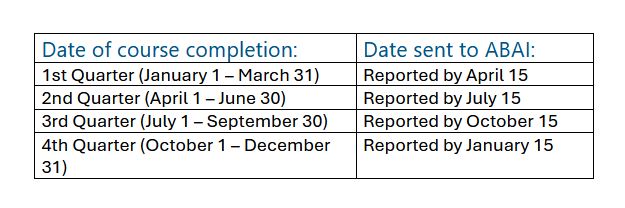 The AAAAI reports earned CME/MOC credits to the ABAI on a quarterly basis. Completions are reported on the schedule below: